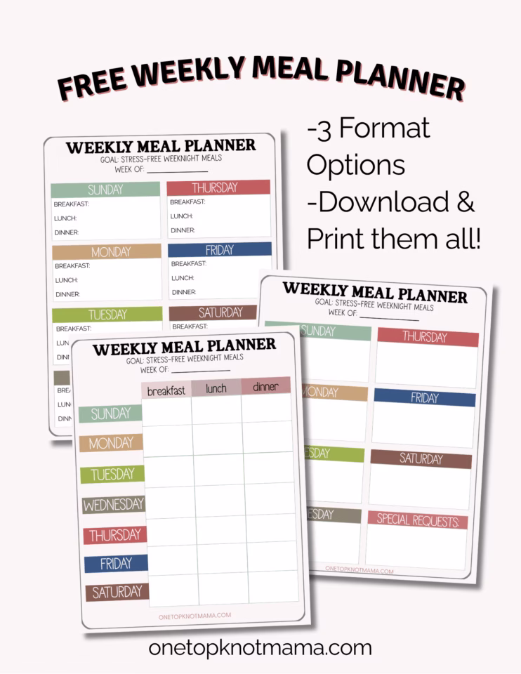 Get your Free Weekly Meal Planner Template — designed for busy moms who want to save time, money, and sanity during the dinner rush.