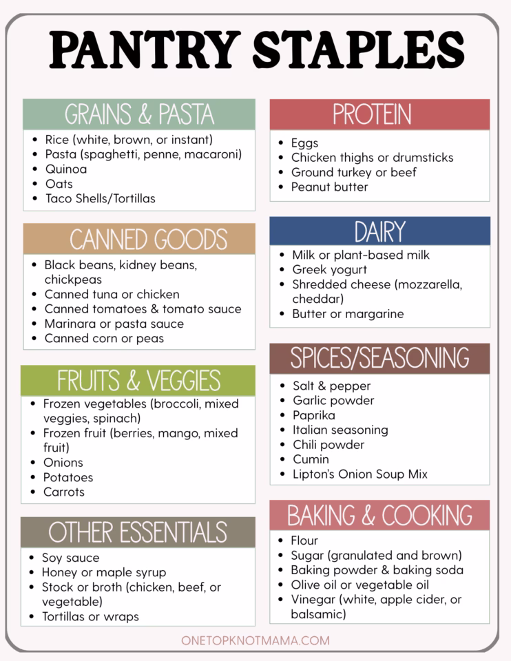 💡 Mom Hack: Print out your pantry checklist and weekly meal planner — stick them on the fridge for a week of stress-free, wallet-friendly meals.