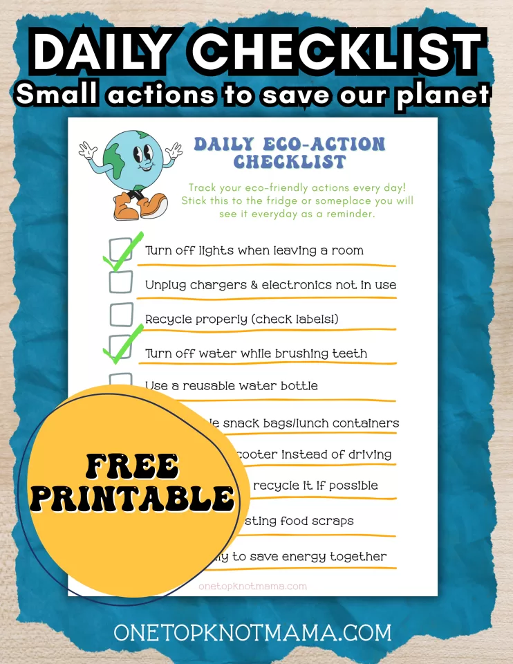 💡 To make this even easier (because let’s be real, we’re all juggling a million things), I made a Daily Eco Action Checklist you can print and stick on the fridge. Kids can check off their eco-actions each day and track their progress.
