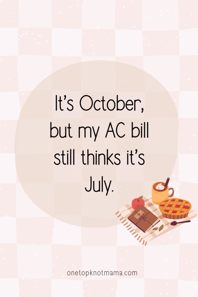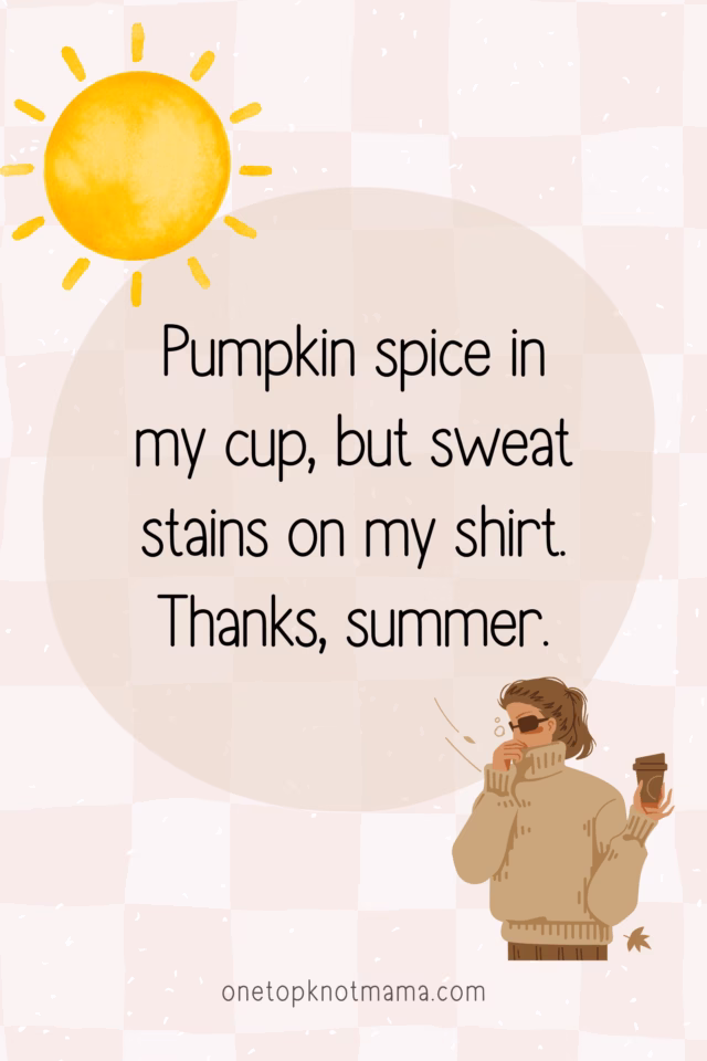 So grab your iced PSL (because hot coffee is still a no-go), scroll through these sarcastic gems, and save your favorites to Pinterest to laugh about later — preferably when it actually cools down.