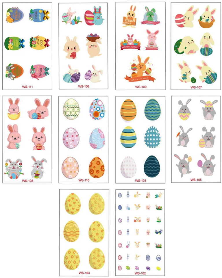 - Make Your Own Easter Egg Bunny Stickers: Easter egg sticker pack contains 6 different styles of patterns, 6 sheets of each pattern, including Easter bunny, sheep, colored eggs, chickens, and more.