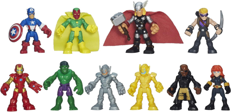 - Marvel Playskool Super Heroes: The toy set comes with Captain America, Hulk, Marvel’s Black Widow, Iron Man, Marvel’s Hawkeye, Thor, Nick Fury, Marvel’s Vision, Ultron, and Ultron’s Sentry figures